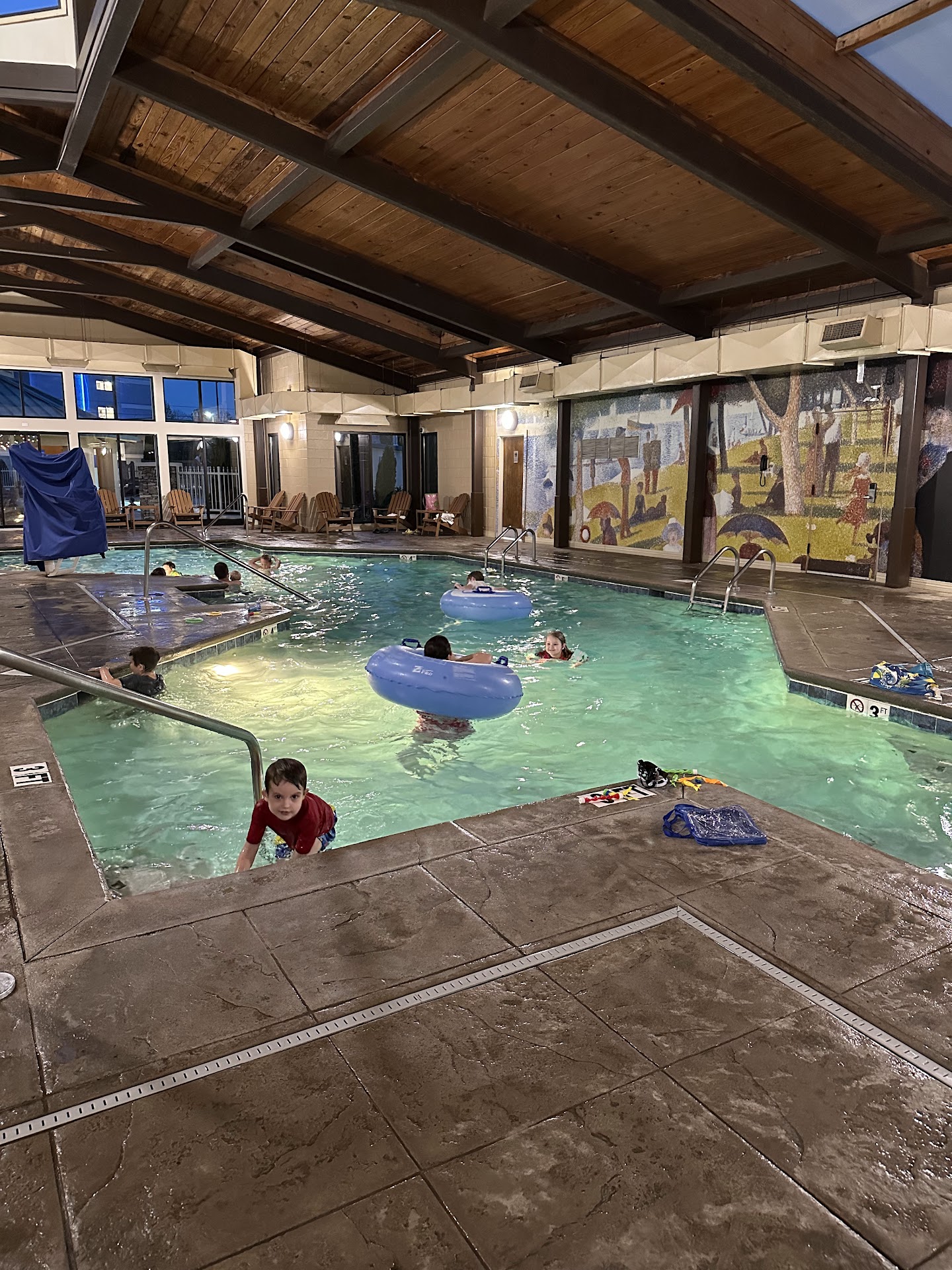 Cons: -THE ELEVATORS. There are only 2 elevators and 1 of them was broken down briefly when we were there. 2 elevators is NOT enough for the amount of people. It was normal to have to pass up 4 or 5 elevators (waiting 15-25 mins) before you could get on one that wasn't full. Taking the steps over and over was not ideal as our child had a hip replacement just a couple months ago. If he had still been in his wheelchair this would have been a huge issue for us. Elevator waits on the day we checked out were the worst, average 30+ minutes. -Bell carts. The day of checkout we waited 1.5 hours trying to get a bell cart. We ended up hauling all of our items in multiple trips down the stairs, with a kid that has mobility issues. -Pool rules and cleanliness. There are pool rules but no one followed them and not one person at the hotel did anything about it. Kids were walking down the water slide, taking tubes from the lazy river and using them on the slide. Parents were busy getting drunk on one side of the pool while their kids were being hellions on the other side. Glass bottles of booze were just chilling on the sides of the pool. The trash cans were overflowing with beer and white claw cans while food, trash and wet towels were left all over the ground and tables. -Innertubes. Just fyi the hole in the tubes are very small, like little kid size. My teen thought he would swim through the tube to get out not realizing how small the hole was, and got flipped upside down with his head submerged in the water and his legs in the air, because his hips were stuck in the small hole. Thank God I was right behind him and was able to jump in and flip him over. Just be aware. -Parking. There are not enough spots in the lot to accommodate all the guests at the hotel. There is a convention center next door and we were told we could park there, but it's a longer walk. Also, when there is a convention going on it makes the parking even worse. We had a handicap placard but it was extremely difficult to get one of those spots during our stay. -Breakfast. It's the same thing every day, and it's not great. If you stay a couple days it would probably be fine, but a week of the exact same food gets tiring. -Noise. The first couple days were fine but after that there were kids running and jumping in the hallways/rooms until midnight or later. Young kids going all over the hotel with no parents in sight.
