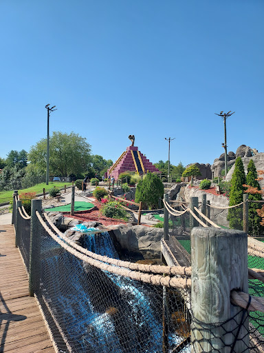 I should have thoroughly read the reviews posted here. The holes are NOT CHALLENGING AT ALL. Some of them were literally like a practice putt course. This wasn't my first pick to play mini golf. I wanted to go to a place in gatlinburg, but they were closed for up to 3 weeks for maintenance, so I saw that this place had good reviews and we passed it a couple of times and it looked enjoyable and fun. When we got there, we were told to play on the diamond side, but the look of it the gold side looked more fun. Even the last hole on the diamond side was just a little bank curve to get it in and if you looked behind the gold side you had to hit it down a hill and there were obstacles on that course... just weird. I could be completely wrong and the gold course could be just straightforward and easy as the diamond course one. Back where I live, if there's 2 different courses at the place you can choose which one you want to play, not this one. The guy just circled the diamond course and said how we're playing that one. (Which was fine since a family of 6 entered in before us and he assigned them to the gold course). We all took the little train up to the top which was the best part of the mini golf. I get that it's summer vacation and mini golf is popular but holy heck was the place packed! It was just me and my husband and each course took us like a minute max to complete since they werent hard or challenging at all and then we had to wait like 10-15 minutes after for families to complete their turn. (Which I get that's how all mini golf's are) but I feel like like if they were more challenging we would've had more fun playing them and obviously not had a problem with waiting. We were debating on leaving in the middle of our game but for $19 a person we were not losing out on that money. (Definitely expensive for mini golf). All I have to say is really read the reviews before going somewhere, or you'll...