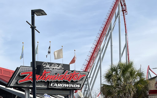 Read moreCarowinds's Intimidator is what it looks like: a series of staggering air-time hills intended to intimidate new riders and instill general glee in coaster enthusiasts. I have two takes on this ride. As a first-time rider who was at least a decade removed from my last coaster, Intimidator's hills shocked me by inducing that stomach-dropping feeling and prolonging it just long enough that I could not scream it all away. The continuance of air-time hills left me in a constant state of thrilled terror that was difficult to fully recover from even after the ride was over. Now, after twenty or so re-rides, Intimidator is an old favorite that guarantees smooth air-time and a little spine tingle on the first drop of the day. This coaster is re-ride-able, if formulaic. Coaster heads may find little to write home about but should not dismiss this ride for adherence to expectation. Intimidator shows its cards up front and delivers exactly what a far-off glance promises. Clever seating spacing ensures that everyone gets a good view, and B &M's signature clamshell restraints allow riders a full dose of float...