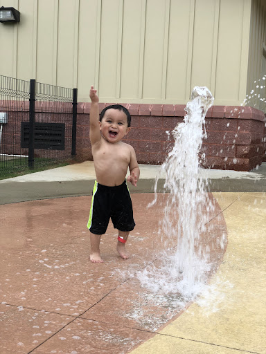 ♿️ Beautiful green space that is very accessible for those with mobility issues. Parking at the front by the gate or you can drive into the park and park in 2 of the available handicap spaces. It is all paved, so easy to navigate. There is lots of parking at the top. There is a playground, water play area, a building which has restrooms, benches in the shade, and a picnic table on one side under a covered area. There is an amphitheater right in the middle and they offer movies on Fridays or Saturdays. The park is very clean and well kept. It was also a pretty busy time around noon to 1 on a weekday. If you follow the entirety of the path, it's not quite a mile and I walked it twice. There is also a smaller loop that is even, no hills. There is a very shaded spot of the walk, near what is a little water drainage area. There was a little water in there, but not a lot. The rocks caught my attention though. Plenty of benches, garbage cans, and picnic areas, though the majority are not covered. This is just a huge green area that is very enjoyable. It is kind of hidden off a side street and that makes it...