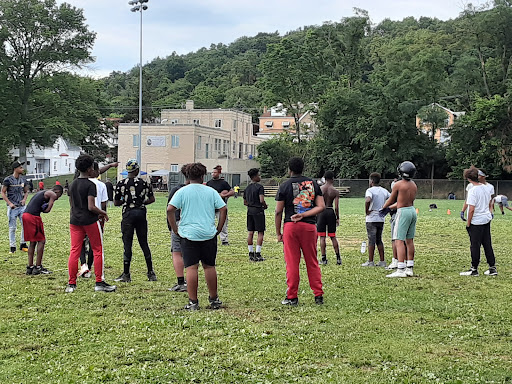 Burgwin Park is located in the neighborhood of Hazlewood in the city of Pittsburgh. This park takes me down memory lane when my children attended the former Burgwin Elementary school; just across the road from the park. Back in 2001-2009, My whole family participated in the Hazlewood Cobras Youth Football league. I worked the gate and the concessions, my daughter was a cheerleader, my son Patrick was a star football player and their dad was a top notch football coach and mentor to the kids. Fast forward to 2021, now my son Patrick is head coach of the (12 to 14 year old) Cobra Midgets ! His dad and I popped in for a visit to watch the chip off the old block practice with the kids, it was great to see my son and assistant coaches teaching the players the fundamentals...
