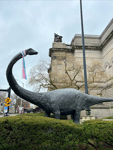 Dippy is a public sculpture of Dippy, or Diplodocus carnegii, on the grounds of the Carnegie Institute and Library complex in the Oakland neighborhood of Pittsburgh, Pennsylvania. The life-size fiberglass model depicts Dippy, or Diplodocus carnegii, considered the most famous single dinosaur skeleton in the world.