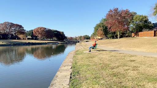 Read moreI find this to be a really well planned park. It has a big slow-ish waterway with ducks and turtles, long walking paths with bridges, a good play area for big kids, a good play area for little kids, shaded picnic tables, bike rack, benches, full around sidewalk visibility for adults who don't want to wade through the bark. Now, why four stars? Apart from the picnic tables set back from the play area on one small section of the grounds, there is very poor shade for this play area. Benches for parents have no shade. The playground only has shade if kids go underneath the climbing areas and play in the bark. Also, while it has one of Plano's fantastic park water fountains, complete with misting capability, that water fountain is really far away from the unshaded playground. Far enough and obscured enough by hilly ground and a few small trees that trying to keep an eye on one kid going for a drink makes it nearly impossible to also keep an eye on anybody else still on...