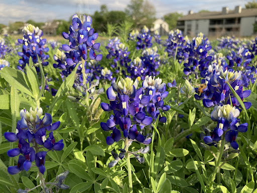 We found patches of bluebonnets to be along the paved path about 200 meters east of Jack Carter Outdoor Pool, but then ended up taking pictures by another patch about 100 meters west of...