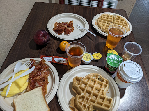 Read moreThe place looks great from 25 feet. Up close it is nasty. Bugs in the room . Pillow cases had smells from the last heads that had slept there. Stains on pillows and pillow covers. Comforter had a wad of hair under the fold back. Also had many stains was not clean.... the carpet had something that dried hard, burn marks in carpet on wall. The room smelled like wet dogs. We have a small pet but we keep him cleaned and in animal cage. The room was spacious just filthy.. we alcalled frt desk and told them we needed Comforter and pillow cases we had to go get them and never said a word about what we found or came to the room to inspect.