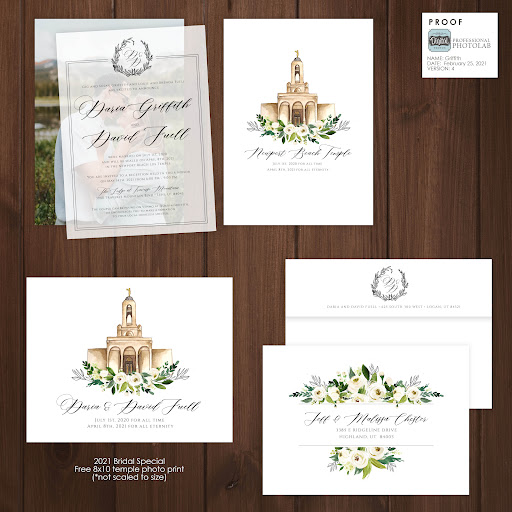 Pro Digital Photos is the BEST place for purchasing all your wedding stationery in the same place. Look, I was like you. I read all the reviews on all of the Utah wedding invitation websites, I cross compared all of the leading competitors, and Pro Digital Photos was the best. They put all of their pricing right there on their website, so you can pull out your calculator and see a really good estimate for what everything's going to turn out to be. That made my wedding budgeting so much easier by knowing exactly what to expect. Reader, I've already done the math, that other place won't be as good.