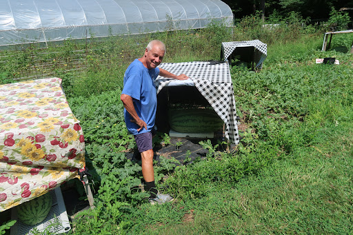My sister and I stopped by here yesterday while out driving around. I met Freddie, who's such a personable man, and he showed me his award winning watermelons in his watermelon patch (they are HUGE and impressive!) and his many roosters, chickens, geese and one very unfriendly (but adorable) turkey. Freddie is so nice and his farm is lovely. However, the stars of his show are his produce. So far, my family and I have tried the peaches and tomatoes - they just melt in your mouth! I can't wait to try a watermelon (yes, after seeing his award-winning ones, I bought a smaller version) and an eggplant. I highly recommend that you stop by here if you get a chance or catch Freddie and his produce at the monthly Farmer's Market in Pleasant View. You won't regret purchasing his fruits and vegetables for sure. I know I will be back again!...