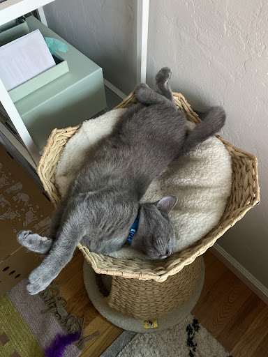 Usually my cats sleep at the foot of my bed, but I think the kitten is afraid of my other cat, so I think he sleeps in the bathroom.