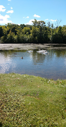 I really love this little part of Heinz Park. There are two resident swans that are there every day, even in the winter time. There are always flocks of geese and ducks and I just recently saw some hooded mergansers. Now that is a gorgeous bird. This area has a resident belted kingfisher who loves to fish from the telephone line that runs right along the path you need to take to the island. There is a bathroom here that is open during the spring summer and fall. Lots of people fish here but I've never seen anybody catch anything... And I mean never!!! ... So don't come to this spot looking to catch fish. It's just outside of historic downtown Plymouth... Not really a place to come to picnic though as there is only one grill... There's a pavilion on the other side of the street though that does have another larger grill but no electricity in...
