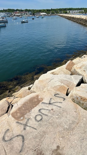 There's a lot of graffiti on the rocks, but it's almost all entertaining and fun. A weird amount of 'financial scam' stuff - this one (saying 'STONKS' is an internet meme reference to bad financial decisions).