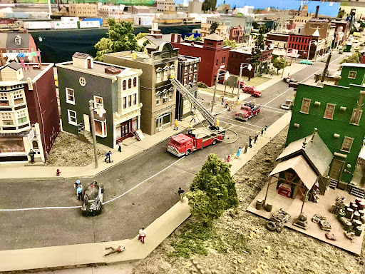 These dedicated train enthusiasts open their doors every 3rd Saturday from 10am-2pm so the public can catch a glimpse of the intricate work they do on these model trains. My boys loved the trains, and I loved the little scenes they had set up in the towns. There was a junk yard, a hot rod car pulled over by the police, a building on “fire” with ladder trucks and people running around, some guys scratching their heads trying to fix a car, and on and on. The details are what make it really special. In the museum room,any historical items are on display including a telegraph machine that guests can try, and a train set just for little kids to play with. It’s a wonderful service to the community and a fascinating...