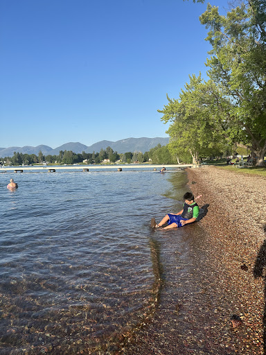 Read moreClean. Spacious...lots of room to move about. Next to a golf course. Absolutely beautiful views...right on the southern shore of Flathead Lake. There's a dock and area roped off to play in the water...a perfect spot for children. Out of the water, there's playground equipment. For picnics, several shelters are available and can be reserved. There are table height bars on one end with electrical plugins on the pole. It's...