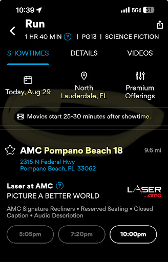 We purchased our tickets through the AMC app for a Sunday morning show and I was pleased to see they were only $5. Even better I had enough rewards to pay for them. When we arrived the first thing I noticed were that the 50's cars were gone. The outside looked kind of shabby from where they had torn everything down and the ground was dirty. Inside the theater it looked nice and newly renovated. The seats in the theater were brand spanking new and they reclined. They were even heated so no more freezing in too cold air conditioning. The heat was actually nice on my back. The aisles between the seats were roomy so you could leave the theater during the movie without disturbing anyone too much. The problem came when the movie started and there was something wrong with the screen. If the screen was bright you could see a kind of glare on it that was very distracting during the movie.