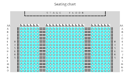 The theatre is a medium size venue, with vertical stair seats. The only ADA wheelchair accessible seats are located in the main level downstairs (entrance level).