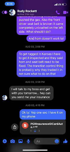 We test drove the truck, and the check engine light came on. We ran a diagnostic, and it showed problems with the catilitic converter. We brought this to Rudy's attention, in which he stated he would have the problem fixed, and even signed a "To DO Work" slip, saying the problem would be fixed. So we went through with the financing, and off we went in our pretty new truck...........