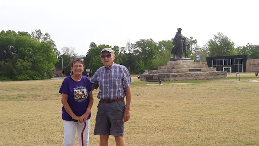 I grew up playing on her shoes and skirt- later realizing when looking up, the expression of courage and determination on her proud face as she forged ahead - alone with her Bible in one hand and her child in the other hand! This statue was commissioned by EW Marland, billionaire founder of Conoco in 1930. He was questioned why a pioneer woman and not a huge Indian statue, since Indians were disappearing. He thought pioneer women were more quickly disappearing. This statue won the national contest and was commissioned by Marland to be sculpted and presented to the great state of Oklshoma. He strategically placed it down it could be visible from his bedroom and other rooms inside his estate mansion, created by artisans from Italy and included sections reminiscent of the Vatican in Rome. My mother, Bette Lee, proudly served as one of the first proud docents of the acclaimed Marland Msnsion and its grounds and buildings on days it was open to the public for tours. If time allows, plan to visit the nearby Marland Msndion, after climbing around this world acclaimed statue by...