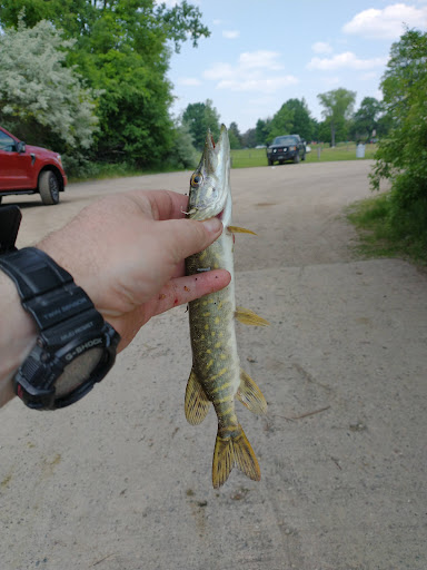 We stopped here to fish for a little while in the early afternoon on a Wednesday. We were a bit disappointed in the amount of loose trash that blew around the place, as well as the multiple vehicles with their radios at annoyingly excessive levels. There are a couple of baseball diamonds, picnic tables/areas and lots of playground equipment along with some sort of restroom pavilion that was out of service. Luckily there were a couple of Porta Johns, but none had any toilet paper. We did catch three fish and were treated to two young Whitetail deer that seemed to be enjoying the day so it was worth the quick stop...