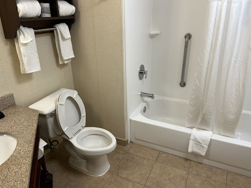 I don’t normally write reviews. Actually, this might be my first time ever writing a review. It was bad. It is bad. For reference, my family is driving across the country from San Diego to Chesapeake, VA. We have stayed at Hilton properties in Phoenix, El Paso, Houston, Mobile, Jacksonville and now this Hampton inn in Newport News. All this week. This was by far the worst of the week and probably the worst hotel I have ever stayed in. For starters, we tried getting a digital key, and it was unavailable. I called the front desk to get the key issued and was told the system was down. (Should have taken the hint, as this was the only hotel that this didnt work) Honestly, by looking at the doors, I’m not sure if they have a digital key system. Once we got to the hotel, initial reactions were positive. It “looks” decent, but the longer we were there, it is just lipstick on a pig. Upon entering the hallway/stairwell (we had our dog so we chose to use the stairwell) you are immediately punched in the face with the smell/feeling of mold and dust (I don’t know if there was mold and dust, but it smelled and felt like it). Getting into the room, that’s where most of the issues were. It’ll be easier just to list them. Crumbs were left on the counter and stove. The air conditioner unit constantly drained, all night you heard running water as the unit drained, it probably needs maintenance. The toilet handle rotated 360 degrees every time you flushed it. The toilet clogged up overnight and I plunged the toilet myself, and even after it was emptied it would still not flush. We found eyelashes on the lamp. My daughter woke up to an ant in her cup of water. The towel holder was loose on the wall over the toilet. The toilet roll holder was barely hanging on. There was a hole in the ceiling of the kitchen where ants were crawling. One of the kitchen chairs were broke, and my son almost fell out of it. Exposed pipes in the closet. Carpet was stained. And, it just smelled bad, like must or mold or old water. It seems like they rennovated the room but didn’t actually fix things. Reminded me of a bad landlord, but I’m not saying they are bad, just reminded me of it. The cherry on top was the gym. Just looked bad, functional but bad. Thanks.