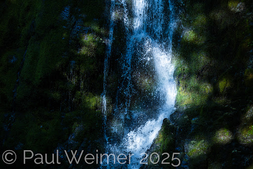 The path winds through lush, moss-covered forest and ends at a scenic view of the falls, which cascade about 50–60 feet down a mossy cliff. There’s a bench at the viewpoint, perfect for taking it all in.