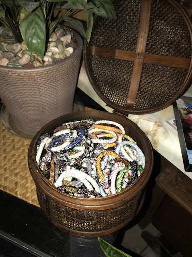 I love these bracelets for oh so many reasons. Here's a few toppers on my list: No end to fabulous designs and vibrant colors. This inspires me to wear more than one on each wrist. Exceptional quality which is smooth and durable. No aggravating clasps to deal with, I simply roll 'em on and I'm ready to go. These beauties go with any ensemble from blue jean casual to elegant tulle and taffeta - also a plus here is Sashka bracelets will never catch or snag on any fabric. The first and foremost reason of all is knowing my purchase will be used to empower the women in the Kathmandu Valley of Nepal, the talented artisans who hand crochet each beautiful bracelet bead by bead. What a deeply satisfying feeling knowing every time I roll several on that I've helped my strong, skilled "sisters" in Nepal rise above poverty through fair trade. I am a Sashka Monthly Bracelet Club member too. This feature saves me time and is gentle on my budget while giving me a way to contribute to the awesome women who produce Sashka bracelets. A fabulous way for me to say...