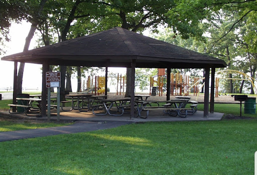 Great Park! It has many different parking areas all down the entrance road. once you get 1/2 way down the road you can see the tennis court, the football area, and many more areas with different sports taking place. Then you go further and see the kids area where there are 2 play places and swings, along with bug carts they can go back and forth in, and what makes it so great is that the entire ground around the kids area is covered with a very soft flexible covering. Making any falls for little ones very safe. No skinned knees ;) to the left of the park there is a full bathroom and sitting area and a volleyball net. You can swim in the lake, go out on the dock, or even walk down a trail. Also covered areas to sit and benches along with picnic tables and benches placed throughout the park. Definalty a good park with many options for get togethers. I do believe there is parking fee to get into the beach area but only during certain times so I would double check that before going or be prepared to pay for parking just in case....