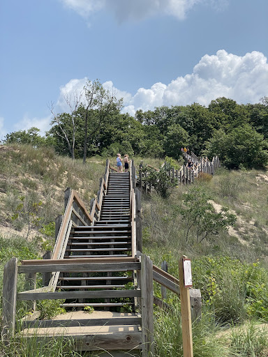 It has the super cool 259 step Diana of the Dunes Dare staircase going through forest, Savanah, Jack Pine trees from the extreme north to Eastern prickles pair cactus from the south. No where else are they side by side. They have a federally endangered Thistle. There are fantastic view of Gotham Cory and you need to know Batman movies to know what real city. You see plant succession from the bushes to the Mariam grass. As you get closer you hear the waves.