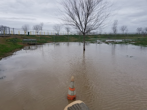 Ariving at this elusive dog park 5 minutes out of city limits "perfect for our furry companion", it was anything but. In the hot summer months we were met by a field of thorns and an unwatered desert ditch. In the winter months, its a flooded runoff swamp. There is water draining directly INTO the park. Where the excess water accumulates and turns to filth. Originally, dogs were stepping onto the drain grate and breaking legs. The only thing that was done was put a to fence over it. This time of year, the only water for the dogs to drink gets shut off. We spend half the time running around the park, making sure all the dogs aren't trying to drink swamp water and get sick. Mind you this is the ONLY place in Porterville we can freely play with our pet to let them run and just be a dog for a few minutes. Not tied up, stuck in a fence, or locked indoors. All we ask for, is an area we can take our dog to play. Not getting sick from water or spending an hour pulling off thorns and washing off mud. For Porterville having a pupulation of over 60,000 people, this dog park is nothing but an afterthought and a fenced in ditch.