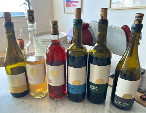 While in Portland for an extended weekend trip, my wife and I stopped by the Buona Notte tasting room—and we were very glad we did. The tasting room is a small studio within a larger warehouse with only a few tables, which felt fitting since we were the only guests there. It’s run by the winemaker himself, Graham. Luckily, our timing was perfect: we caught him just as he was opening a little later than usual after coming directly from harvest.