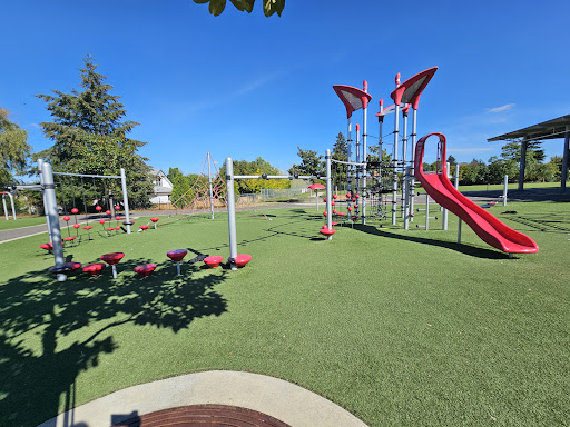 Read moreVery cool park with plenty of fun things to do , including two zip lines, that was actually the reason why we went there . You can't go when the school is open and dogs are not allowed. There is also a basketball court in the shade and a big grass area to run around. The park looks new and very well landscaped . The only negative thing is that I found some trash left around, maybe it would be helpful to add a trash bin by the playground for the ones who can't be bothered to walk back to the one...