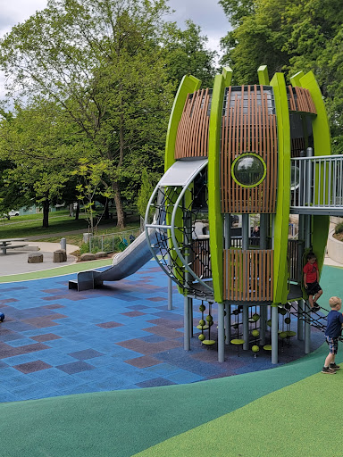 We needed an accessible park, and this was one of the best options I've found yet. There were some safety risks on the playground, an exposed pipe covered by a cone that was quickly removed by other children, the rock wall is very high and kids were walking across the top (even very small children), and the fence has multiple entries which make it difficult to supervise impulsive/hyperactive children. The equipment was otherwise fantastic, the bathrooms were accessible (no changing tables), pathways were reasonable angles, inclusive swings had an accessible pathway and the merry go round was wheelchair accessible!, and there was a wide variety of seating across the playground for adults and children to sit. The sensory walls and AAC board were my...