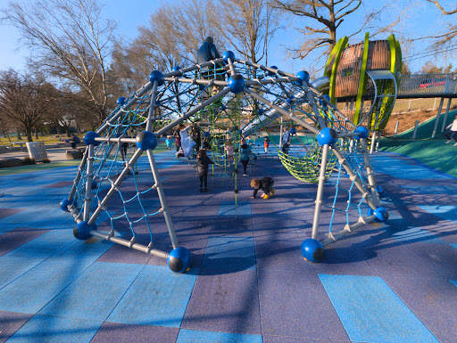 Read moreWhat a beautiful park! From a safety perspective, I was able to stand in one spot and see the entire park from several places. The park has fences and walls around that would make it hard for someone to just grab a kid, or for kids to run off. For playing, this was such a unique park. I loved that parents could assist and go anywhere. The teeter totter had adult sized seats. There was a net where kids could climb around, but there was also a 6ft tall opening so a parent could very easily get in the middle if needed. The slide was also big enough for me to go down without having to lie down or squeeze and do weird contortions....