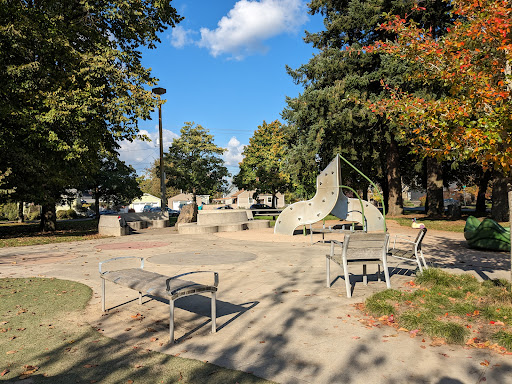 Inclusive playground with swings, super wide slides, a climbing area, 2 tennis courts, and lots & lots of wide open grass that includes a softball field. There is a large "sand pit" area that has tons of toys, mostly dump trucks, to play with. It also has an artificial rock with some iron animals attached to it. My daughter tucked under the fake rock ledge and we did some pretend play for a bit. Since it kept my 11yo's attention, I imagine many other kids will enjoy it as well. The park includes a paved pathway, great for wheelchairs and strollers as well bipedals & bicycles..all the 'cycles! 😀 There is a large xylophone that is super fun to play with as well. That is probably our favorite feature...