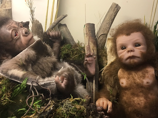 As you you approach the museum there is a giant wooden Bigfoot who has poor posture and looks slightly sad, lonely and depressed which makes total sense because Big Foot has no friends and has never spoken to anyone and is in a never ending game of hide and go seek which never ends. Can you imagine that kind of lonely? I could shed a tear just thinking about it. When we entered the museum we were greeted by Loren Coleman the owner and cryptic-zoological expert. Who looks like a mad scientist with a beard. However, Loren is no mad scientist he is a very bright man who really knows his stuff. Although not a huge museum it has over 10,000 items on display. Some of the items include the highly elusive Fur-Bearing trout which looks like a trout with hair glued on it but don't be fooled it is mounted on piece of wood which says Fur-Bearing Trout proving it's authenticity. Just a few feet away you can see a mermaid which is fascinating. It is tiny and ugly unlike the hot fake ones in the movies. I mean how ridiculous are the ones in the movies with blonde hair and perfect breasts. Think about it if lived in the water your hair would always be a mess and your breasts would be misshapen which this one had. The merman picture is also tiny and ugly with bad hair, coincidence, I think not. This is only the tip of the Iceberg. When you go upstairs you will find Baby Bigfoot which is awesome because he has hair all over his body except on his little doll torso because everybody knows you have grow up to get hair on your chest. Also upstairs is there is Wee Folk Display which I loved! It display's very tiny cryptoids, which was awesome, but I just wish it was bigger. At the end of the Hallway you can see Santa Claus's family tree, Can you say mind blown!! On this family tree in black print you can find Santa between Big Foot and Satan.. Which again makes total sense because like Big foot Santa is highly elusive and like the devil he can make something beautiful like the birth of Jesus and make all about money, greed and presents. Lastly, at the end of the hall is a life sized hairy Big Foot who I wanted to hug and say "it's okay buddy hang in their" but their was a rope and sign that said don't touch. And then it hit me like teenage mutant turtle (also in museum) kick to the head So close yet so far... just like Big Foot, well played Loren,...
