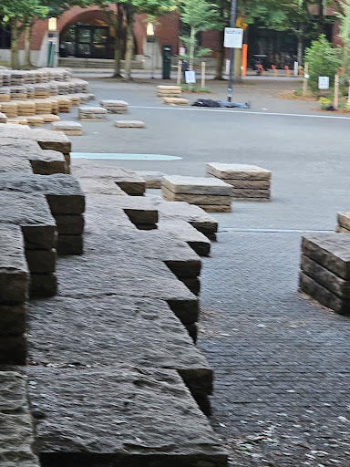 Read moreThe squares in Portland are great for two activities I do often; eating lunch and people watching. Jamison is a small square but with plenty of seating. Its an open brick courtyard with several decent trees on a green grassy area and 5 or 6 doubled-up (back to back) park benches along the the side walk. Set in amphitheater style with big stepping stone structures for sitting on, or performing. On my last visit I watched a woman striking dramatic poses for selfies. And a man in his 40's was walking around carrying his pants and desperately asking everybody if they had a bar of soap he could use. I usually observe something amusing in the squares. This wasn't the first time I had seen this man in a frantic state carrying his pants.