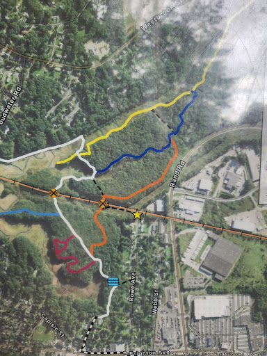 Read moreWe took our dog here the other day and really enjoyed this network of trails! There are signs and maps at every intersection so navigating your choice of trails is very easy. It was a quick walk down to the falls then we took the pink trail loop back to the white trail, from the white tail we took the yellow trail, then the indigo trail and then back to orange trail and the parking lot on Rowe Ave. It ended up being a 2.5 mile loop. The parking lot is very small but from what I’ve read there are a few other places where you can park and pick up some of the trails. It was muddy but that’s to be expected when...
