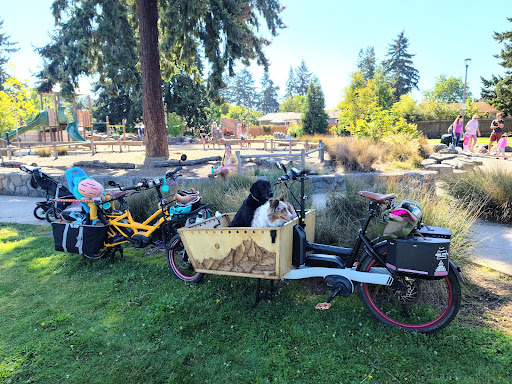 Read moreWhat a great little park! It is partially shade with a few large fir trees. There is a simple play structure that is more natural and has a forest/nature feel. A small covered picnic area suitable for small gatherings like kids birthday parties. The paths are paved and smooth, the ground mostly level for easy walking. There isn't really a parking lot, however it is next to a small church which had a small parking lot. I also noticed a designated handicap space on the corner near the park sign. (Street parking) I find the street parking does fill up! It was a little crowded, but I think it was because there happened to be a kids birthday party happening that day. Nice clean "Portland Loo" and porta potty. My 3yr old spent the most time in the water feature, it was perfect for a hot sunny day and really suitable for all ages. There was also a skate park and a small grassy field.