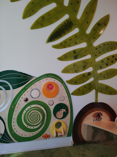 I like that the kids area is it's own contained room in the lower level, close to the bathrooms with a room set aside for nursing mother's. The kids area does get a bit crowded, there is a play area, desks, and a spot for coloring. The kids area was a louder and busy whe we visited. I liked the more natural decorations and fun small details for kids to find and explore.