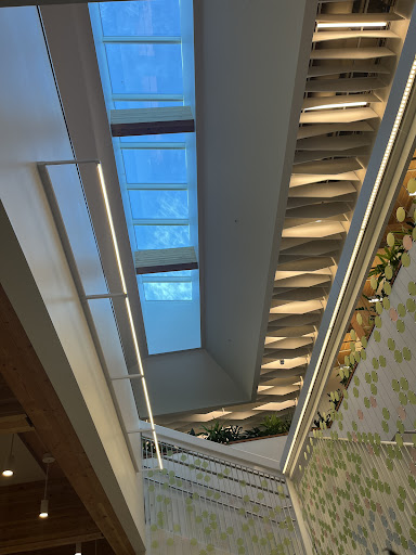 Pictures of main public area, the stairs, and the atrium above the downstairs entrance One of me- looking like a normal...