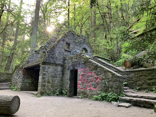 This is a really scenic little stone house! I had just assumed the house to be as old as the stories of the land's original settler in the 1850s, but when I visited it I kept noticing pieces of the construction that looked much more recent than the 1800s (rebar, large cut stones, relatively recent concrete work, and so on.) I did a bit of research later, and the house was built as a restroom(!) sometime around the 1930's. It was damaged in a storm in 1962 and then abandoned, which means it has "only" been vacant for about 57 years. It was a very cool stop, and the hike is very cool too! Dense, tall trees with thick greenery, several fun side trails and a trail network going north as far as most people would really want to walk in one day. The only reason I'm giving it 4 stars out of 5 is because my hopes were a little high for a frontier-era cabin and instead I saw a Depression-era restroom (it looks like the downstairs used to be larger but was sealed off with concrete, probably to prevent homeless camps or drug abuse.) I'll definitely visit this area again in the future, when the...