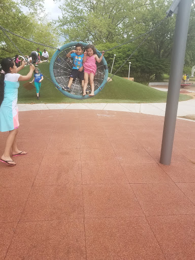 Read moreVisibility is not good unless you follow your children around the giant hill to keep a constant eye on them. You have to bring something to slid down the hill on. Most people bring pieces of cardboard. You would think cardboard was gold for the kids. They fight over it if they can't share. So BYOC (Bring your own cardboard). 😆 This is a playground designed to keep your child moving and not sitting for any length time. Which is very needed for all the processed food we all consume these days. My child doubled in weight in 2 years. I am sad and devastated but I am working on meal prep plans and healthy choices for all of us to help her out. So this park is perfect for her. She stays active the whole duration we are there. We walk to the park and never stop moving until we get back home. I have 4 kids, 2 of them are under 4, so it is hard to keep track of them all, all the time. I can't make the older ones follow the younger ones because then they don't get to have fun. It is a constant workout. But that is the life of a mom most of the time anyway. Overall it is good for kids but for parents who need to sit down for a few minutes at a time, not good at all. I am pregnant and hot and out of breath most of the time 😆. I want to sit my heavy butt down for at least 1/3% of the time. So for me this is just an okay park. The healthier I am the more stars I can give. I got...