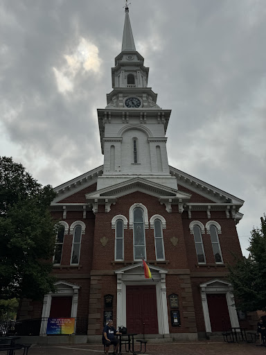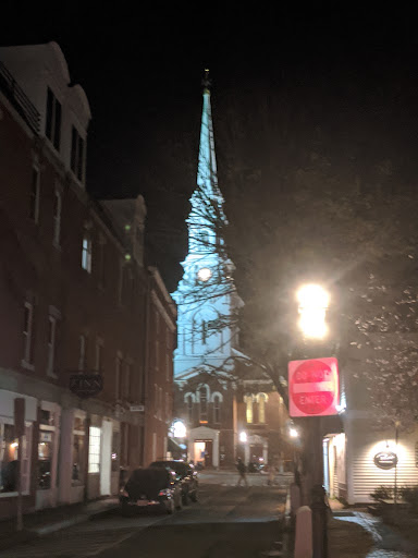 I'm not someone who attends church, but, this church has and still is at the heart or center of downtown Portsmouth. I went to a lecture on the history of the North Church and not only learned about the history of the congregations and pastors before and during the church, but, how it is tied to the history of Portsmouth and it's continued presence in downtown Portsmouth. The lecturer said the Wikipedia page 📄 is about 50% accurate. I'm just learning the history. I remember this church from my childhood and while growing up, something I'm still working on. There was and still is activity going on in front of this historic building. Music 🎶, political rallies, people painting 🎨🖌️, taking pictures and even the Black Heritage Trail has a sign posted here. G W , the first 🥇 President of the United States, visited here. I visited after reading an article about the church in the Sunday edition of the Portsmouth Herald. I hope tours will start again. Facemasks are required to enter. The stained glass windows are a sight to behold at sunset 🌇. Basic two level design with padded pews. You can't miss it! The clock ⏰...