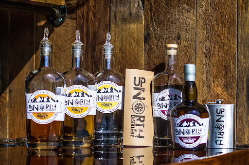 Up North Distillery prides itself on producing small-batch craft spirits, with a “farm to flask” philosophy. The selection includes barrel-aged honey spirits and apple brandies, matured for 1-2 or 2+ years.