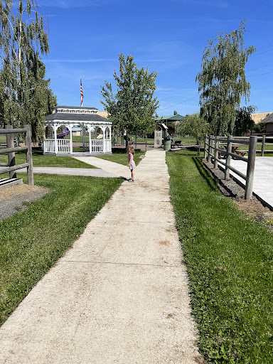 Amenities: Play structure with bark, swings, flushable bathrooms, drinking fountain, multiple picnic shelters with grill available to rent, open space to run in between, paved loop trail for walkers/runners, seasonal splash pad, baseball field, volleyball court with net, racquet courts, disk golf, musical instruments, workout equipment, a small pond/stream, cabins and RV spots to camp at.