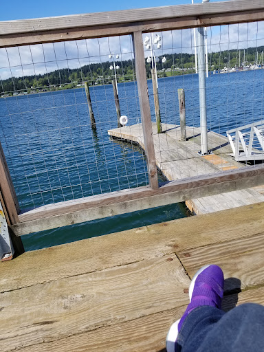 I go on outings with my 90 year old mom. She uses a walker and can handle the brief walk on the boardwalk to sit and enjoy the view. There are gourd-shaped nests created by the Kitsap Audubon group attached to the top of pilings. Purple Martins, a type of Swallow, were feeding there young in the nests and it was lovely to watch and listen. This was 5pm in August and they were really active. Apparently they migrate for the winter.