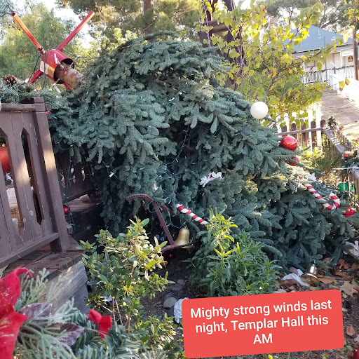 Our little slice of history in Poway CA. At times different activities are going on in the hall. Available for rent for gatherings. Always decorated for Christmas, very pretty. This pic was after a big Santa Anna Wind, the tree was back up the next day. We have Great city workers in Poway making...