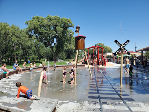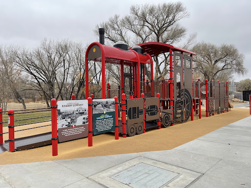 Such a cute little play park for kids just off the downtown area!! I love that it is a train that even has a train track!! Details are key for the adult eye! Lol. There is a bunch of seating for the parents to sit and even a restroom which I feel like is unheard of. We were here during the winter months so the splash pad part was out of service but my son still had a ton of fun sliding and climbing on everything!! One absolutely amazing feature of this play park is the fact that there is a small part THAT IS ACCESSIBLE at the front of the train!!! You can take your child to play with different features such as a drum, steering wheel and even a pair of binoculars!! So neat!! Every playground needs something like this!!
