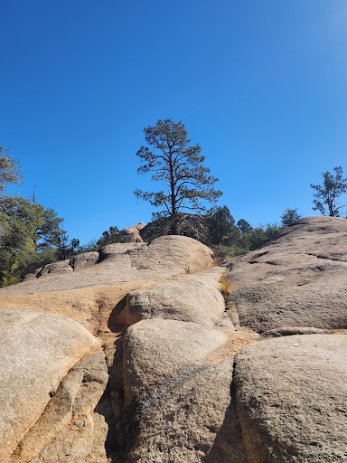 We came too late to catch the sunset. Oops! We did walk out onto the boat ramp and enjoy the cooler breeze as we observed lightning in the distance. Taking a small stroll, We found ourselves walking up a sandy trail before it turned to solid rock. It felt nice to climb over where the weather had worn its own groove into the Rocky terrain. Many trees scattered across the surface where they had taken hold as seed years ago and survived in this climate.