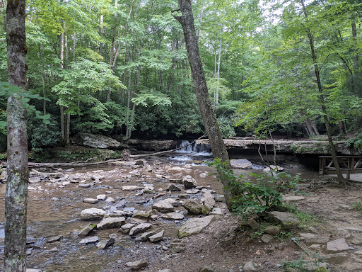 Mash Fork Falls is a lovely little waterfall located in Camp Creek State Park. On this visit I did an out and back trail run following Turkey Loop trail to White Oak trail to Deer Crossing trail to Kneeley Knob trail to Bear Wallow trail past Campbell Falls and turning and going back instead of going for a loop. Two things you might want to keep in mind if you are traveling on foot, there are a lot of creek crossings on this route and you will get wet feet and the route I did totalled 25 miles so take care of your feet. Also remember that these trails are used by equestrians so be prepared to follow trail etiquette regarding yielding to horses, etc. You will also encounter manure and 'hoof churning' in spots on the trails. The manure is not a danger, just a little inconvenient in some places. There is a beautiful Vista with a picnic table on the Kneely knob trail. Unfortunately, there were several mounds of manure next to the table. I don't mind manure on the trail, but it would be nice if equestrians would take a little time to move their horse's deposits away and to the side of the table area in consideration of other...