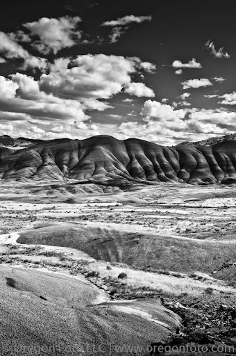The Painted Hills at the John Day Fossil Beds National Monument is noted mostly for its colorful geology made of heavily eroded volcanic ash layers deposited during ancient times when the area was a river plain with a warm tropical climate. Over time, the layers of ash formed with different mineral compositions, which led to the incredible bands of color seen today. The red and orange hues are from laterite soil which formed by floodplain deposits. The grey coloring is from mudstone, shale, and siltstone. The striations of black soil are lignite which was vegetation that grew along the floodplain. It is from these layers of ash, minerals, and vegetative matter, coupled with eons of erosion from the powerful forces of nature that caused the painted hills to emerge as we see them today.