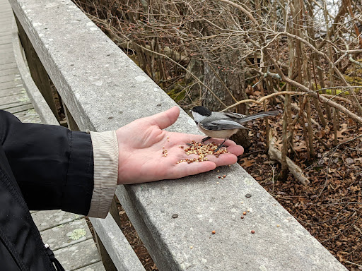 Read moreIt is REALLY fun to bring sunflower seed with you and have a variety of birds land on your hand to get them... But the Powers That Be REALLY, REALLY don't want you to do that.
